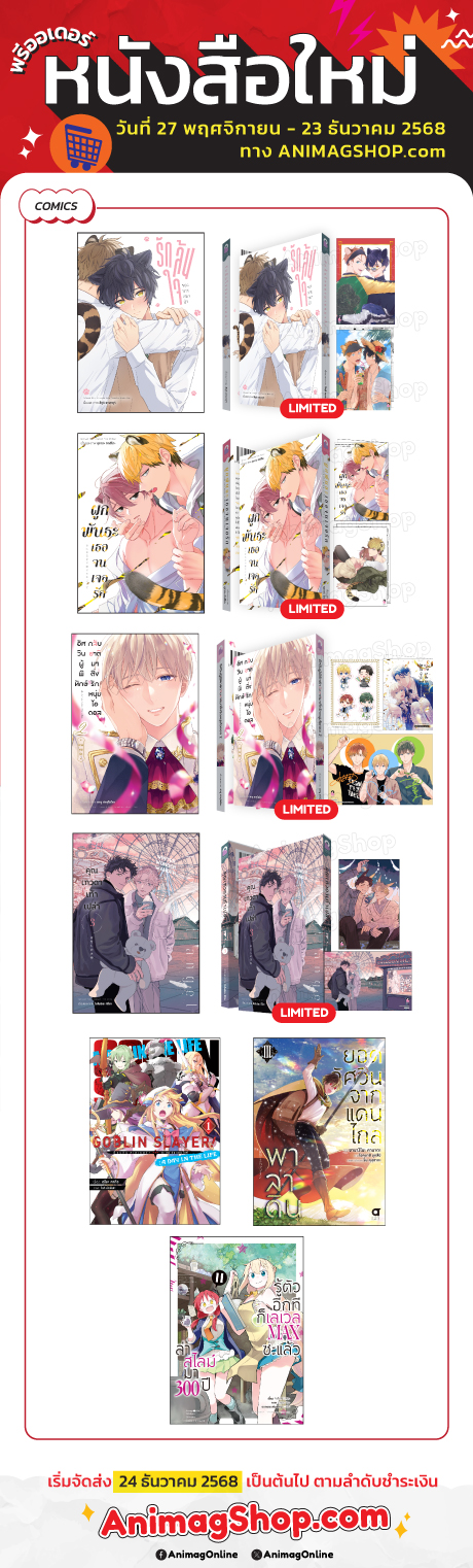*รายการสั่งซื้อที่มีหนังสือพรีออเดอร์และหนังสือปกติ จะจัดส่งพร้อมกัน*